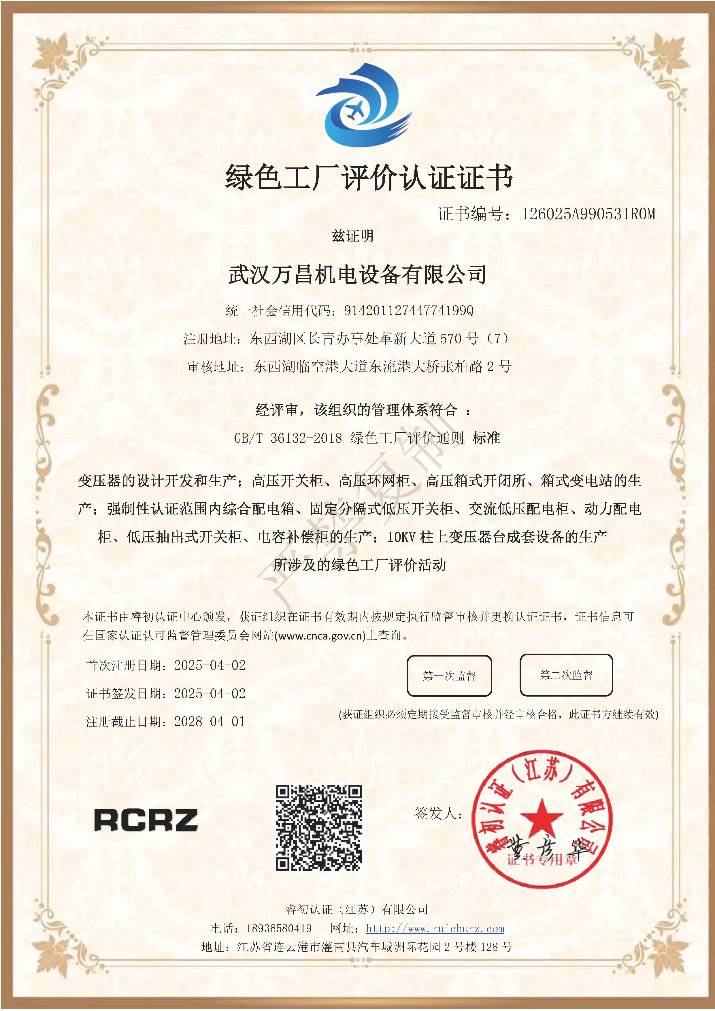 - 綠色工廠評價(jià)認(rèn)證證書